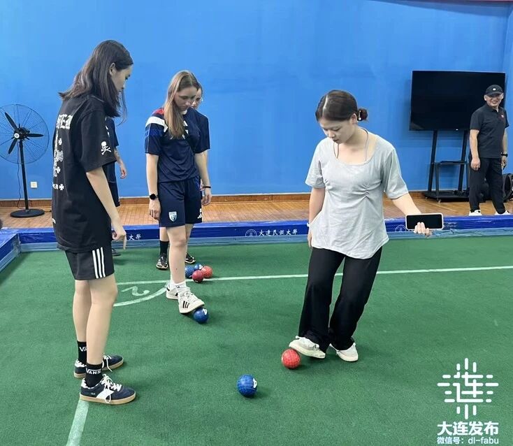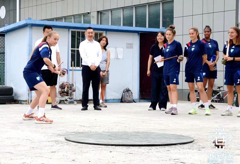 當(dāng)日下午,上法蘭西綜合理工大學(xué)女子足球隊(duì)的二十多名隊(duì)員和教練員,來(lái)到大連民族大學(xué)開(kāi)發(fā)區(qū)校區(qū),與大連民族大學(xué)師生就中國(guó)傳統(tǒng)民族體育運(yùn)動(dòng)蹴球和陀螺,展開(kāi)了一場(chǎng)生動(dòng)有趣的交流和對(duì)抗。