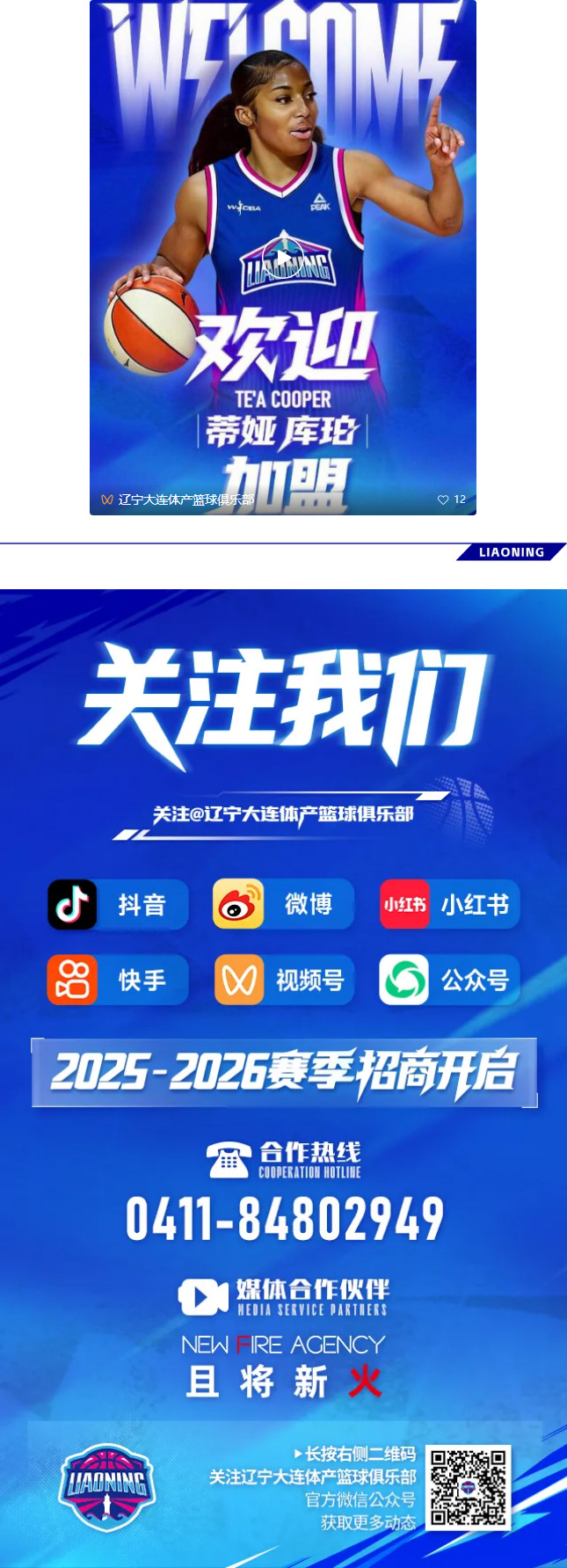歡迎蒂婭 · 庫珀加入大連文體旅女籃大家庭!期待她在新賽季中充分發(fā)揮其技術與經(jīng)驗,幫助球隊在WCBA賽場上披荊斬棘,奏響更多勝利凱歌!