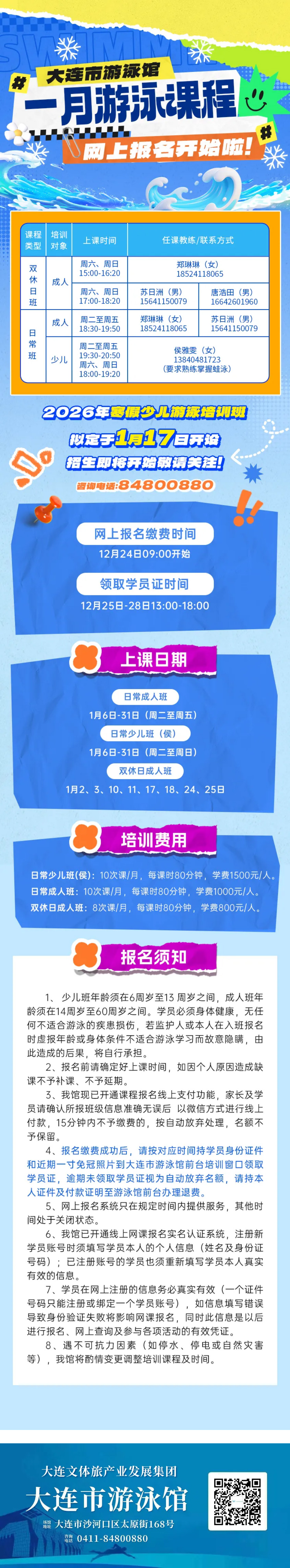 大連市游泳館一月游泳課程網(wǎng)上報名開始啦!