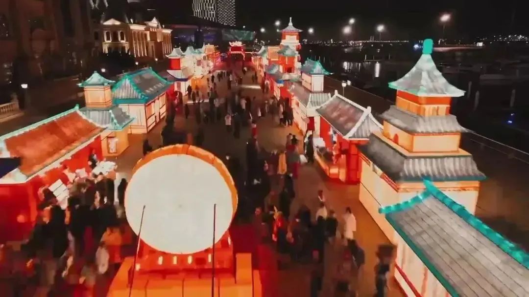 傳統(tǒng)手藝人現(xiàn)場(chǎng)派禮、拋繡球互動(dòng),唐舞表演、變形金剛巡游合影、煙火秀應(yīng)接不暇,年味小吃街升騰起久違的煙火氣、濃濃的大連味。