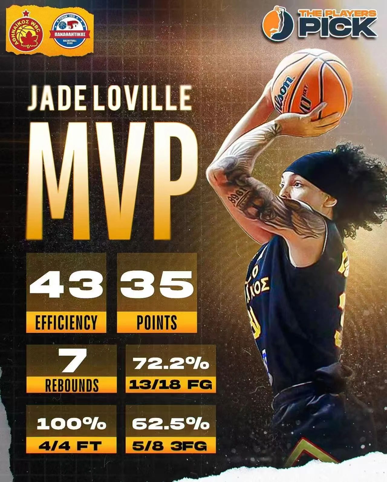 賈德·勒韋爾2023年參加WNBA選秀,被西雅圖風(fēng)暴隊(duì)選中。先后在西班牙、希臘、墨西哥和美國(guó)聯(lián)賽效力。2024-25賽季,賈德·勒韋爾在希臘雅典科斯隊(duì)場(chǎng)均貢獻(xiàn)16.8分、3.6個(gè)籃板、2次助攻、1.6次搶斷,3分球命中率高達(dá)42.7%。