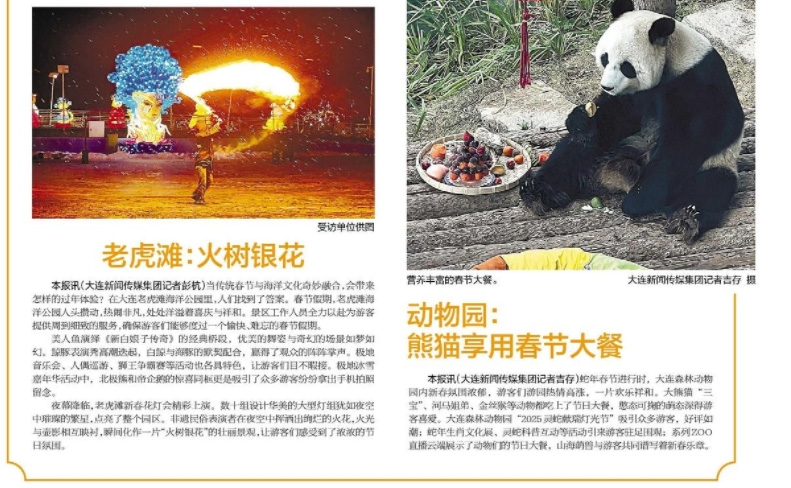新春佳節(jié),歡樂(lè)祥和。節(jié)日期間,大連文體旅集團(tuán)各景區(qū)、場(chǎng)館開(kāi)展了各類(lèi)特色項(xiàng)目及惠民活動(dòng),現(xiàn)場(chǎng)人流涌動(dòng),熱鬧非凡,贏得市民游客廣泛贊譽(yù)。累計(jì)接待游客逾17萬(wàn)人次,優(yōu)惠減免近3萬(wàn)人次,吸引了央視新聞、遼寧衛(wèi)視、大連新聞、大連日?qǐng)?bào)等眾多主流媒體廣泛報(bào)道。