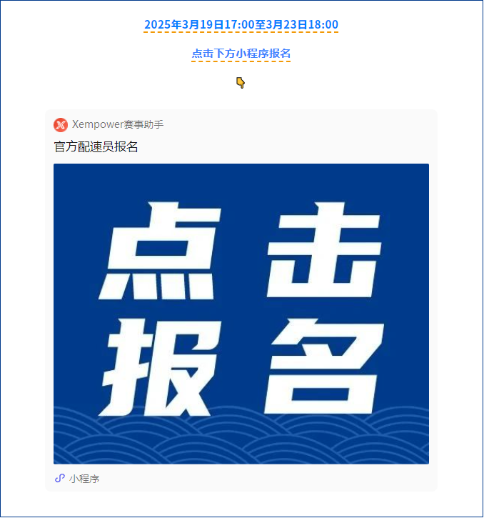 3.擁有穩(wěn)定的配速水平和嫻熟的控速能力,能夠保證全程合理、穩(wěn)定的帶領(lǐng)相應(yīng)配速的參賽人員在目標(biāo)時間內(nèi)完賽;
