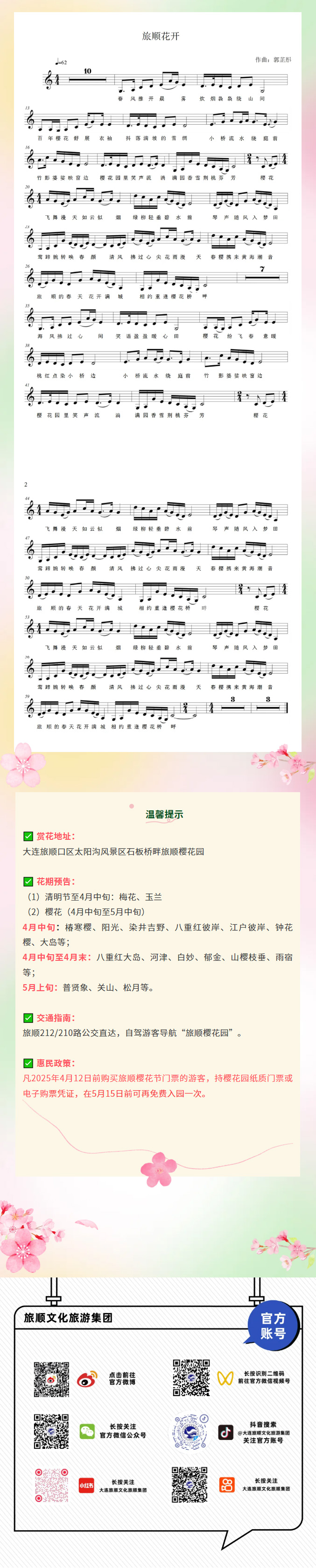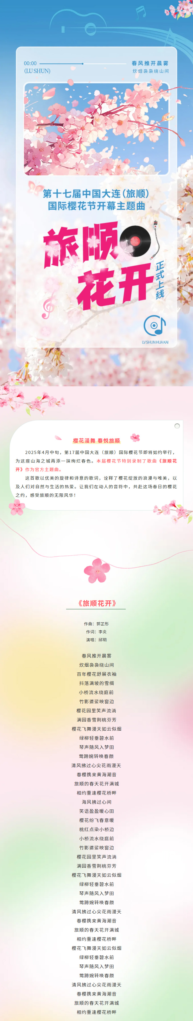 第十七屆中國大連(旅順)國際櫻花節(jié)開幕主題曲《旅順花開》正式上線