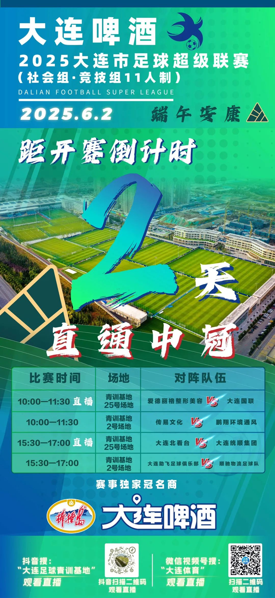 大連啤酒·2025大連市足球超級聯(lián)賽(社會組·競技組11人制)距開賽倒計時2天