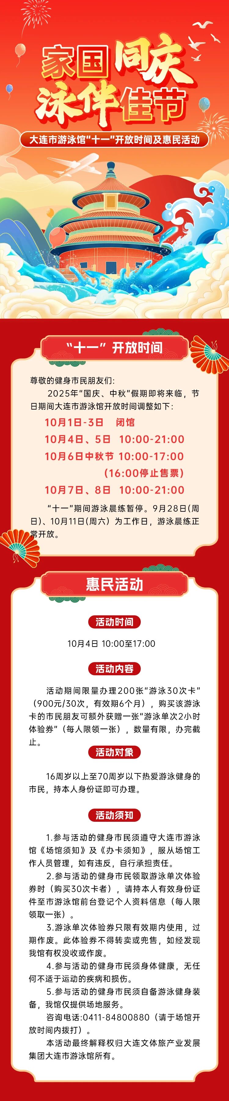大連市游泳館“十一”開放時(shí)間及惠民活動(dòng)安排