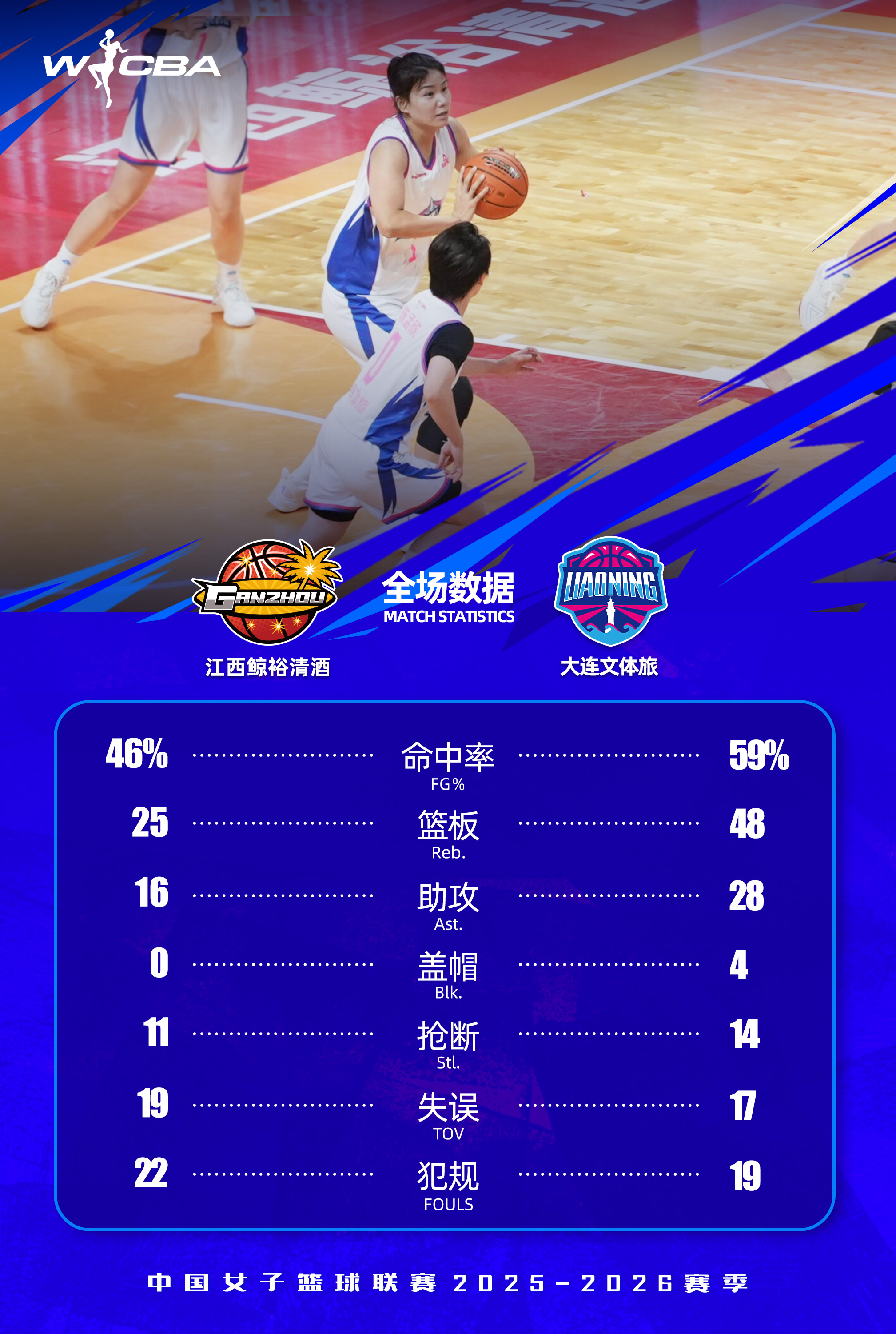 戰(zhàn)報 | 開季四連勝!大連文體旅117:91江西鯨裕清酒! 2025-12-12