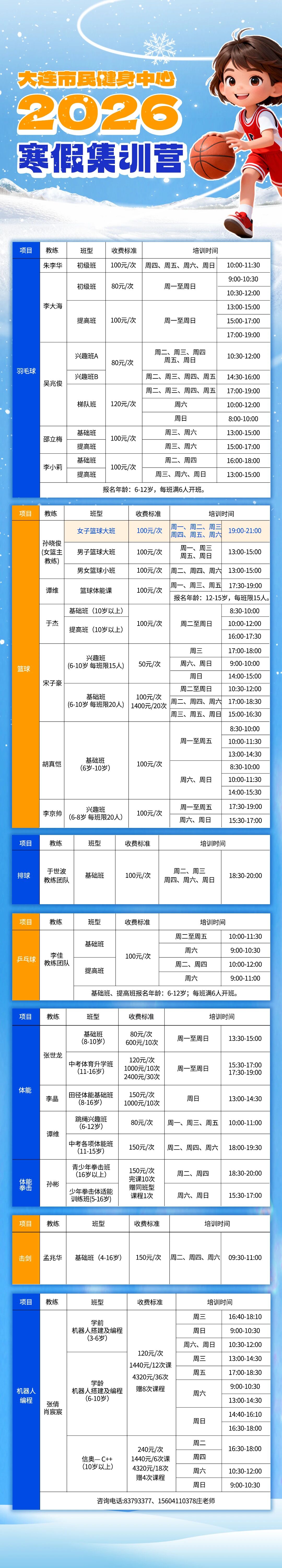 大連市民健身中心寒假集訓(xùn)營(yíng)課程表