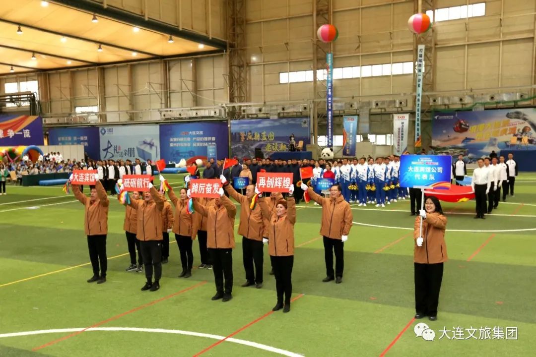 伴隨著雄壯激昂的運(yùn)動(dòng)員進(jìn)行曲,國(guó)旗、集團(tuán)司旗2個(gè)方陣以及集團(tuán)所屬企業(yè)、總部機(jī)關(guān)8個(gè)代表隊(duì)依次入場(chǎng),他們步伐整齊、精神飽滿、口號(hào)嘹亮,叫響“大連文旅服務(wù)”品牌,展現(xiàn)大連文旅領(lǐng)軍企業(yè)形象!