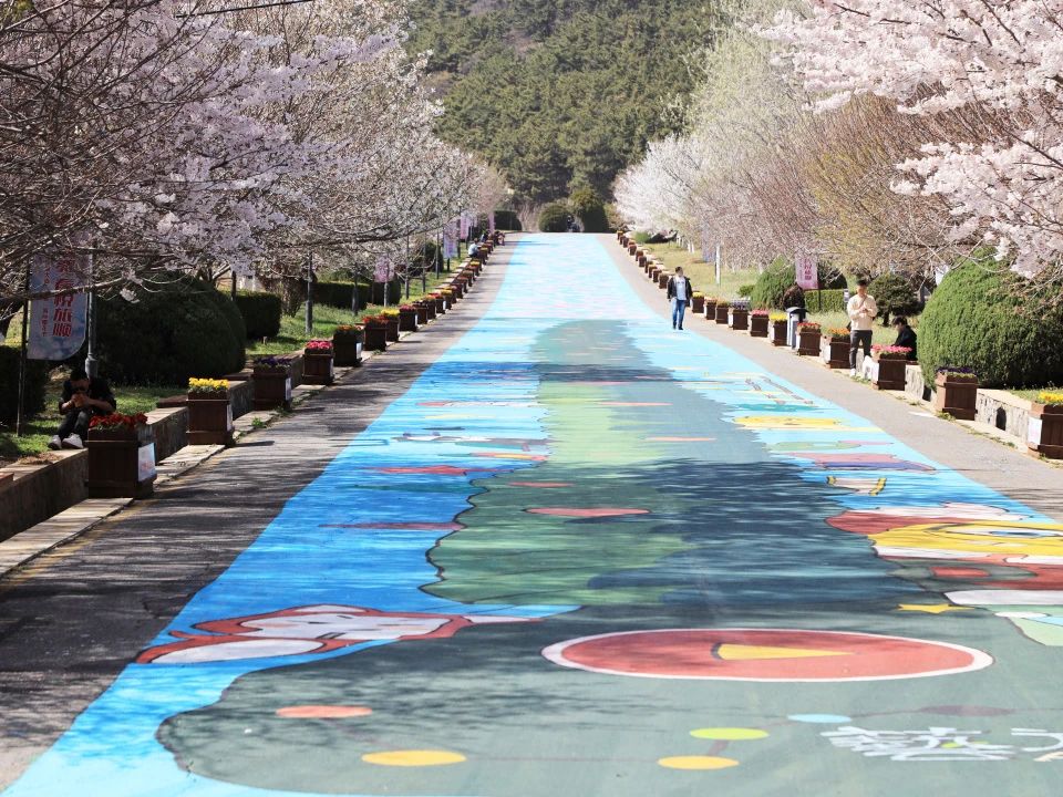 園區(qū)主道路櫻花大道、萌寵樂園墻面等處增添了彩繪設(shè)計(jì),豐富的色彩營造活力愜意的假期氛圍。