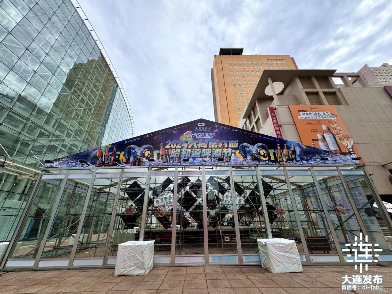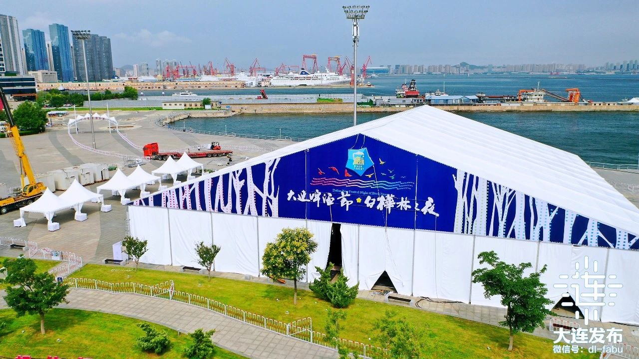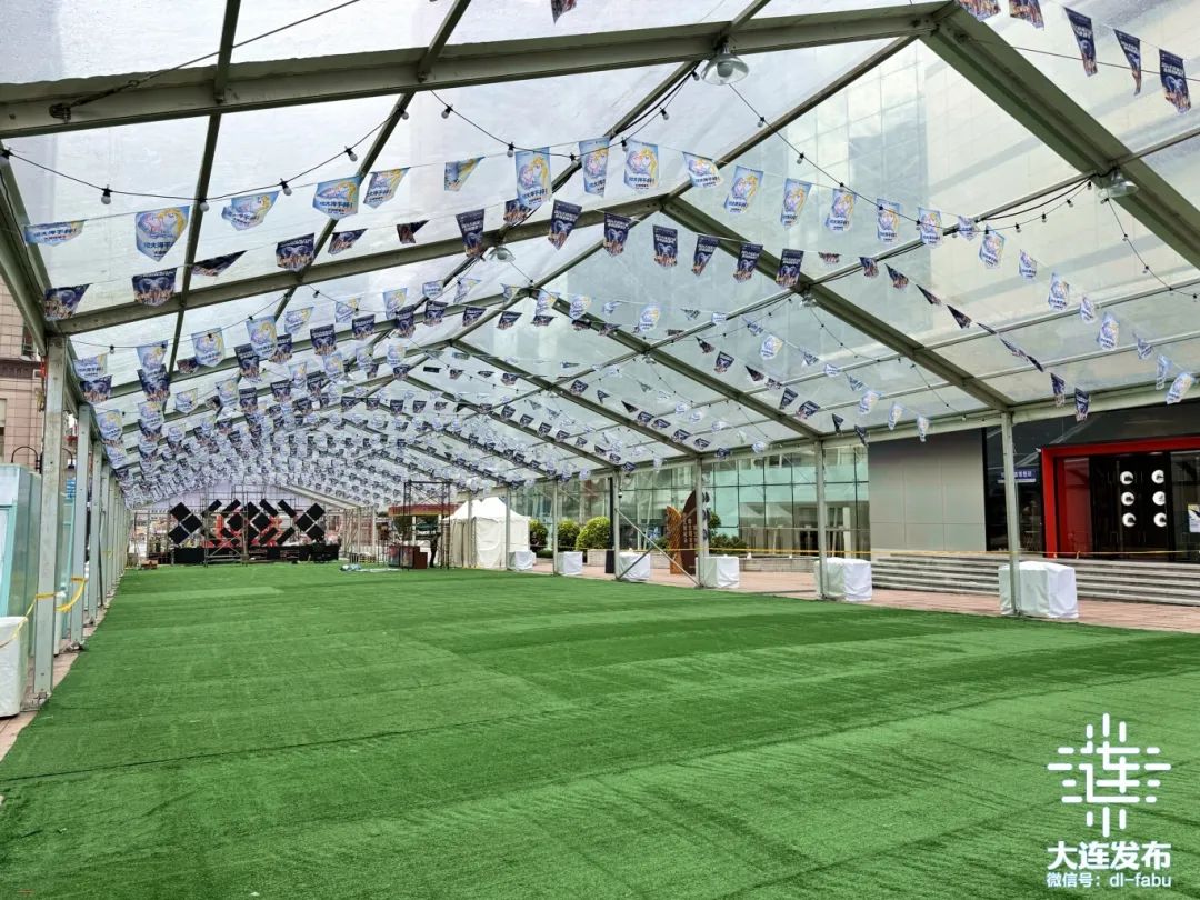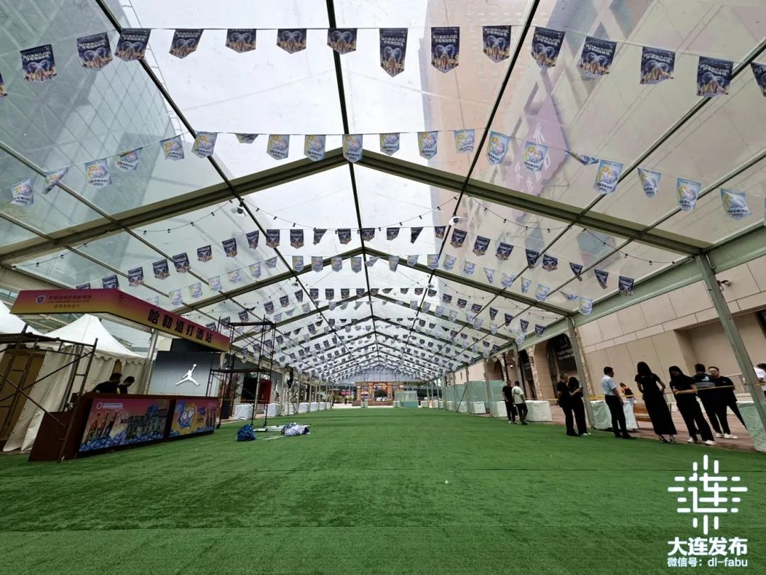 在大商青泥洼商業(yè)街分會場現(xiàn)場,透明的“星空頂”篷房及舞臺已基本搭建完成。待綠植造景、串燈彩旗、IP形象等裝飾完成,就可以點(diǎn)燃盛夏夜。