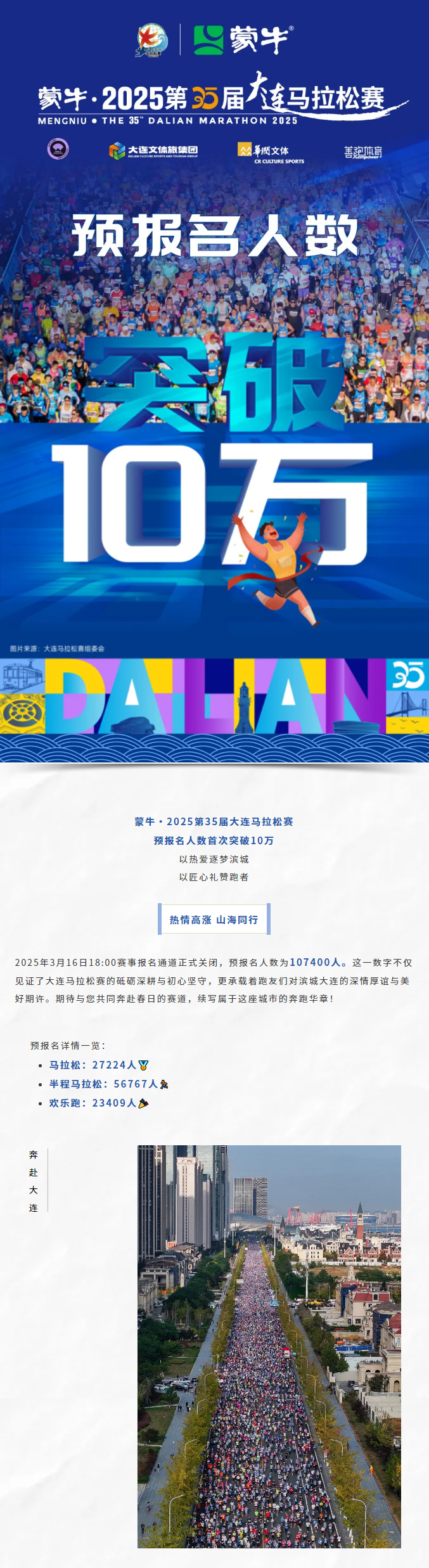 10萬(wàn)+!蒙牛·2025第35屆大連馬拉松賽預(yù)報(bào)名人數(shù)創(chuàng)歷史新高