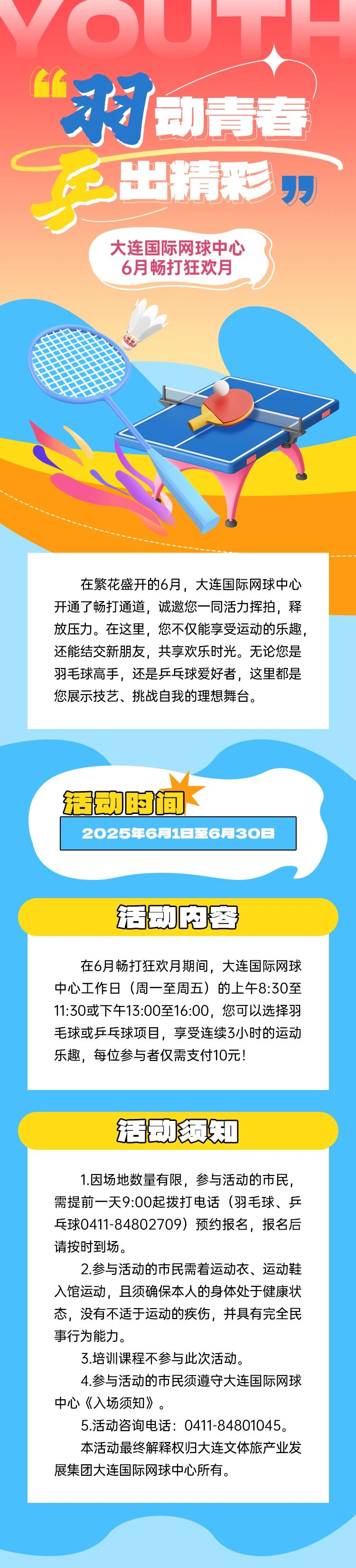 “羽”動青春 “乒”出精彩——大連國際網(wǎng)球中心6月暢打狂歡月